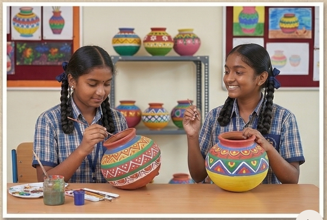 Discover your inner artist. Our vibrant Arts and Crafts programs at Lakshmibai Khandre Public School encourage students to explore traditional forms, like hand-painted pottery, alongside modern design. Here, imagination finds a canvas and every creation is a unique masterpiece.