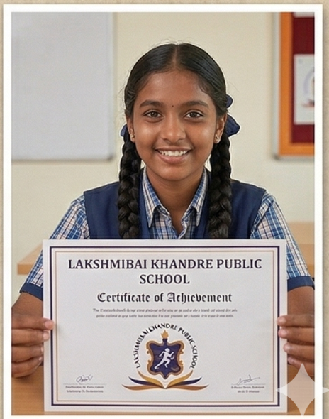 A proud smile that represents a world of opportunity. The Lakshmibai Khandre Public School Certificate of Achievement is more than a piece of paper; it’s a milestone marking your daughter’s academic success, holistic development, and her readiness to step into the world with confidence and grace