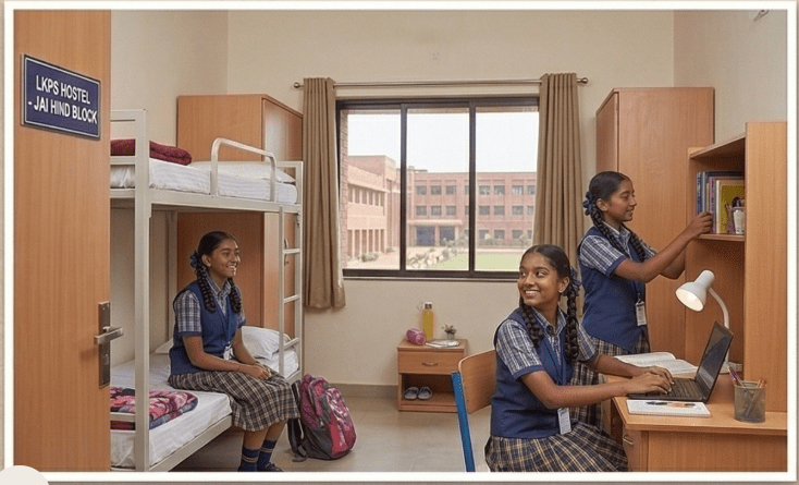 At Lakshmibai Khandre Public School, we provide more than just lodging. Our modern Hostel (JAI HIND BLOCK) is a dedicated space where students from diverse backgrounds live as a community. With clean, structured dorms, personal study areas, and on-site mentoring, we ensure every girl feels safe, supported, and at home while she focuses on her educational journey.